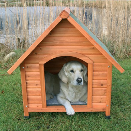 With a pitched roof and extra high feet, this house has just what your dog needs to protect him from cold or humid floors and the weather outside. Provides good air circulation below the kennel, while the roof and ledge protect from outdoor elements. Made of winter-proof, weatherproof glazed pinewood. Easy to clean and quick to assemble.